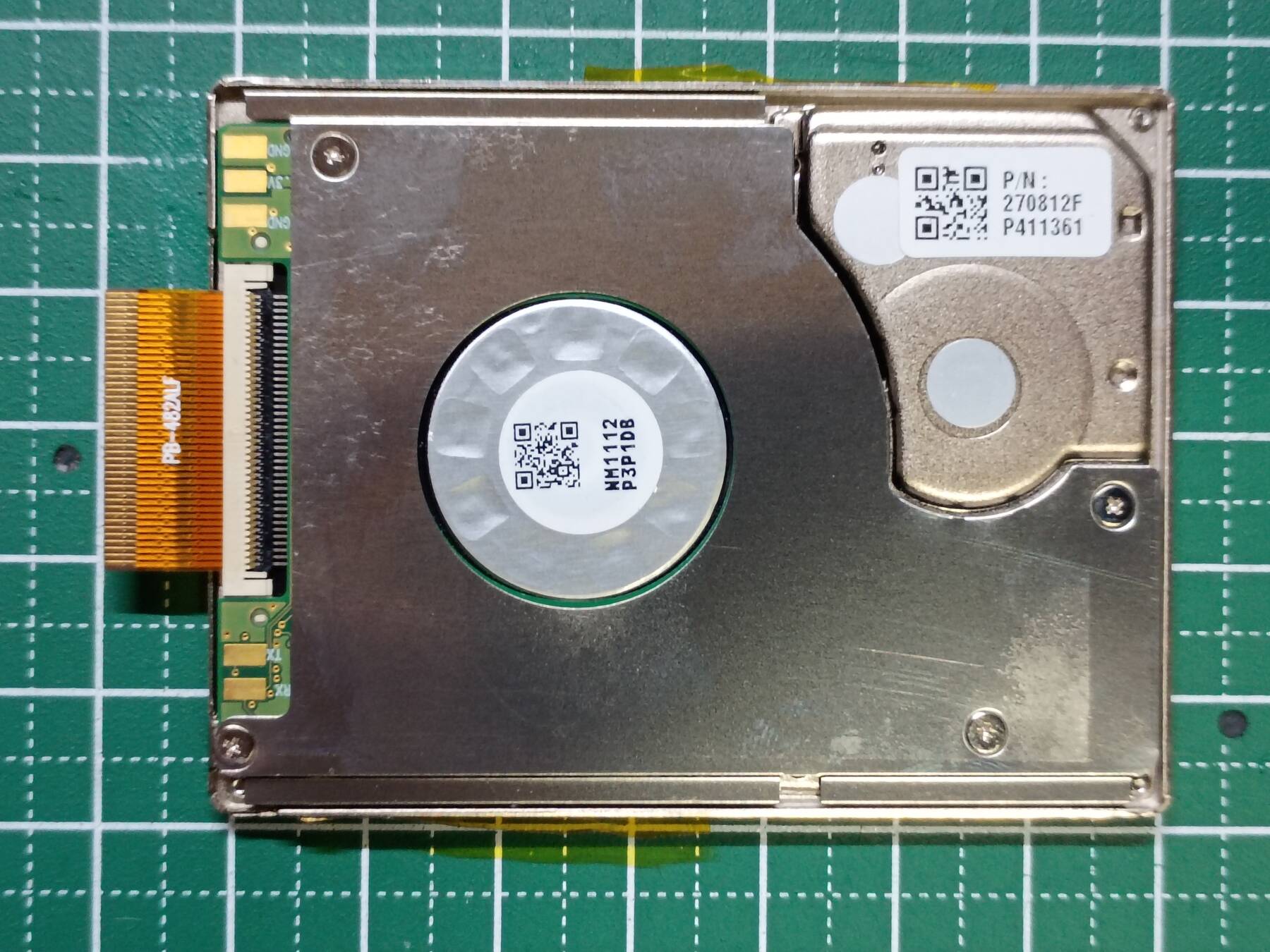 The hard drive is a ZIF connector 1.8" Samsung SpinPoint HS030GB. That seems to be an upgrade over the Pepper Pad 3's 20GB drive. I ordered a ZIF mSATA adapter so I can make it solid state.