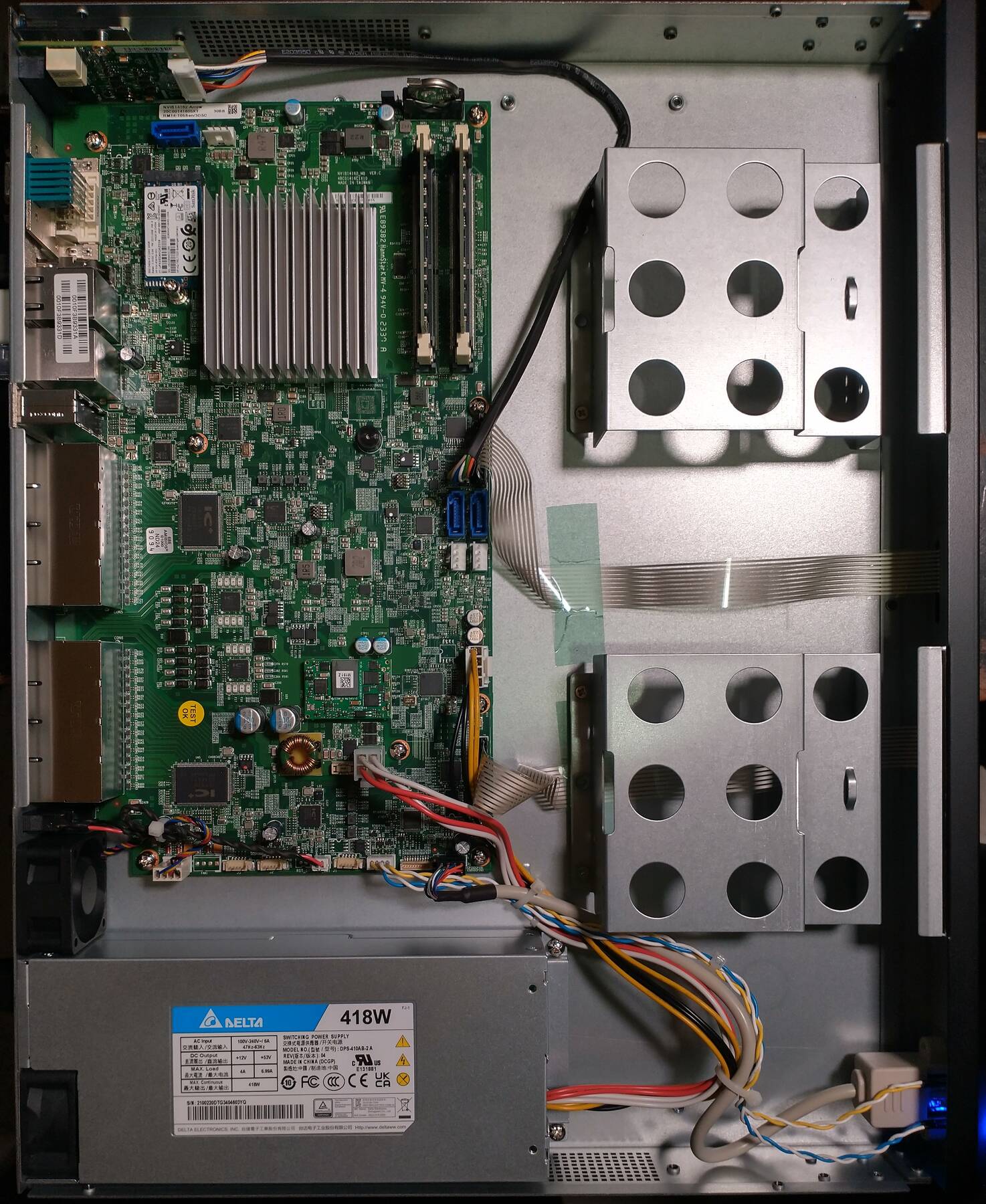 A low power 1U server with a couple 8-port fast ethernet PoE switches. Lacks PCIe expansion.